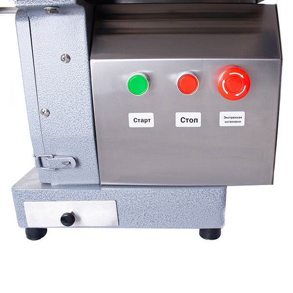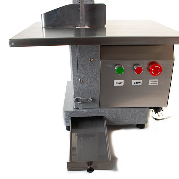 - Рабочая часть (стол, ограничитель, толкатель) выполнены из нержавеющей стали. Основной корпус выполнен из окрашенного металла.