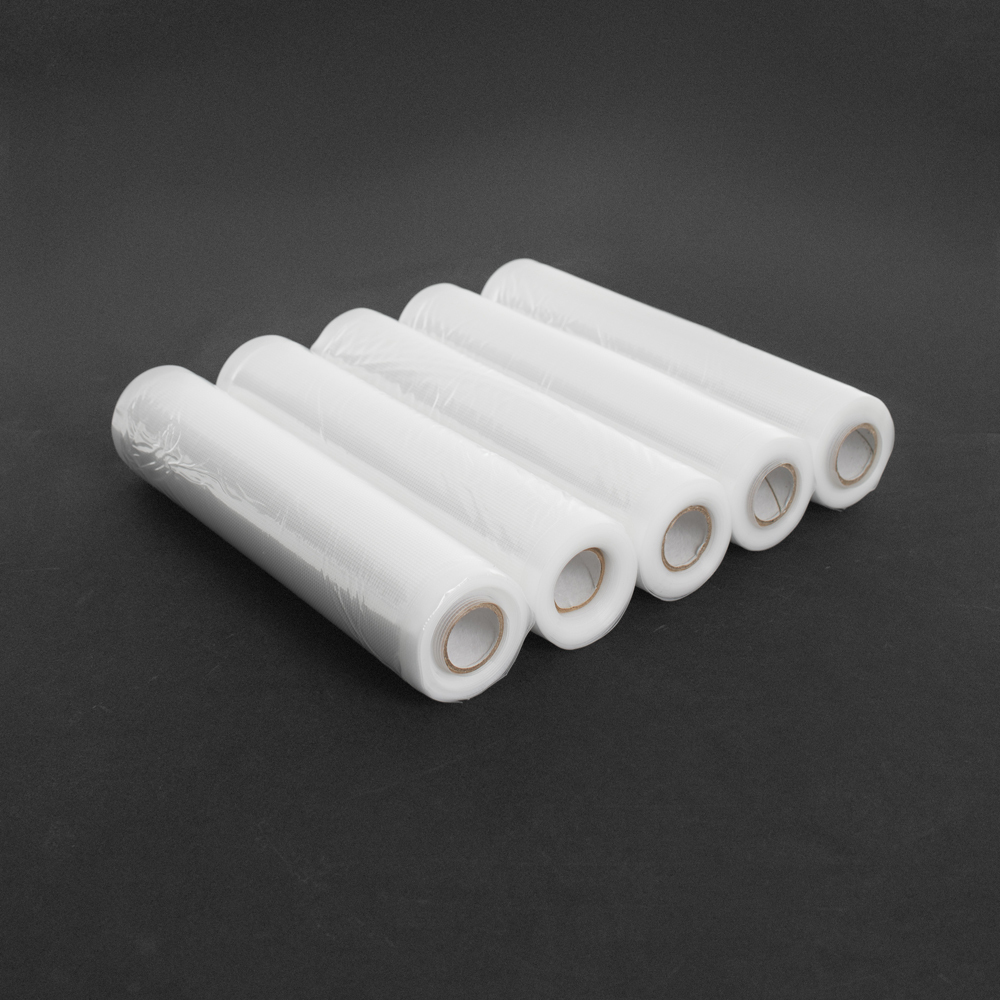 Приобретается пятью рулонами. Отрезав часть, вы получите рукав, в котором рифлёная и гладкая плёнки соединяются друг с другом с двух боков. Каждый рукав изготавливается минимум из пяти слоёв. Два слоя вакуумной плёнки созданы для предотвращения попадания воздуха, один слой является адгезионным, а два считаются защитными.