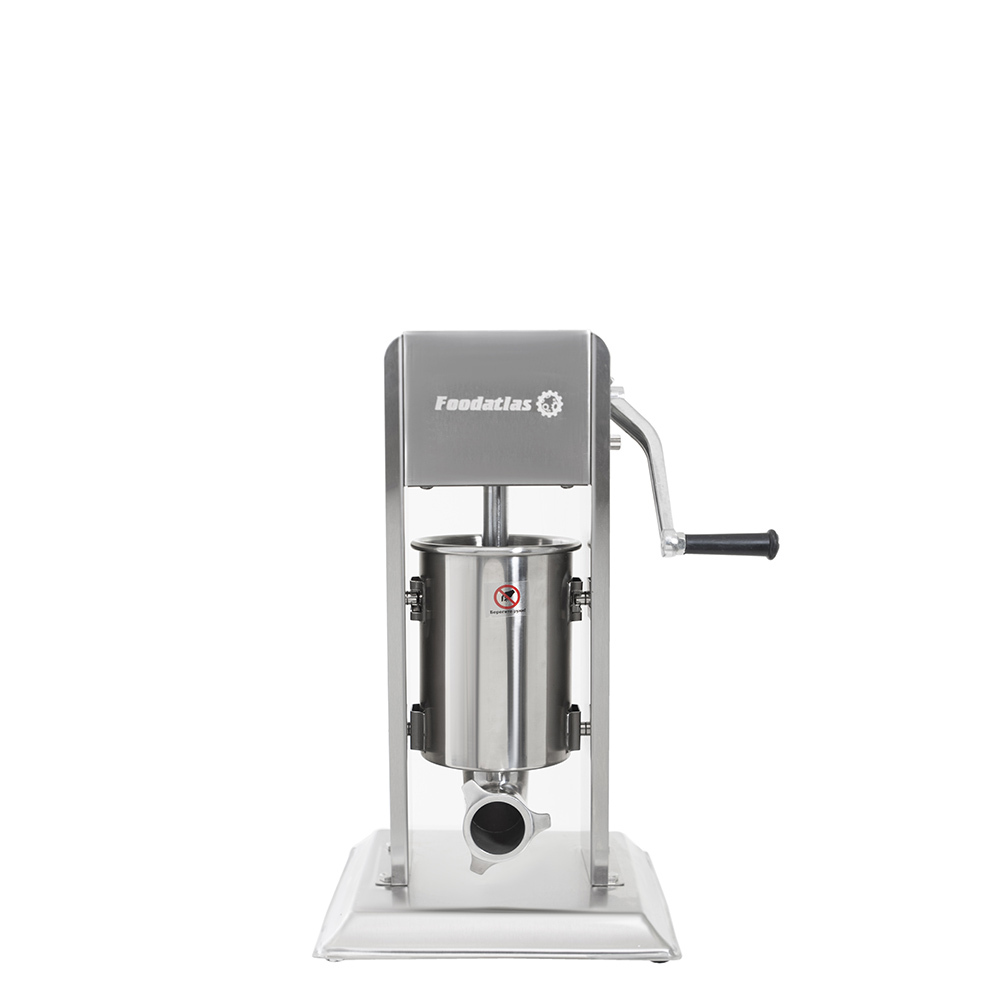Шприц колбасный вертикальный VS-3L Foodatlas полностью сделан из нержавеющей стали. Компактные размеры позволяют помещать его даже на небольших кухнях. Емкость цилиндра составляет 3 л, чего вполне достаточно для создания приличного запаса мясопродуктов.