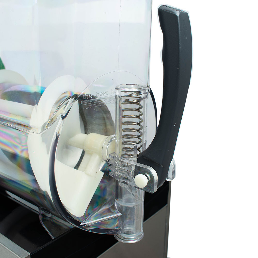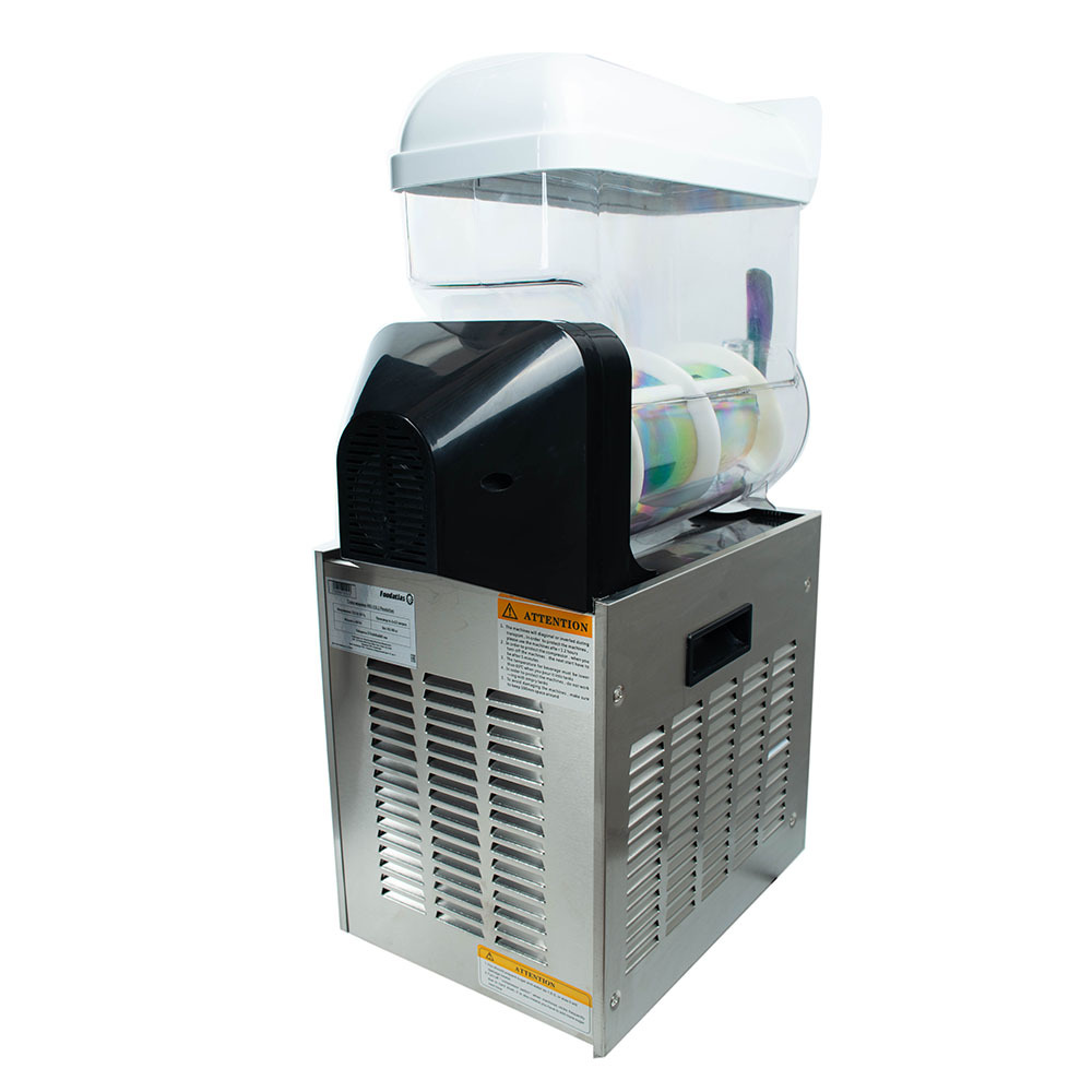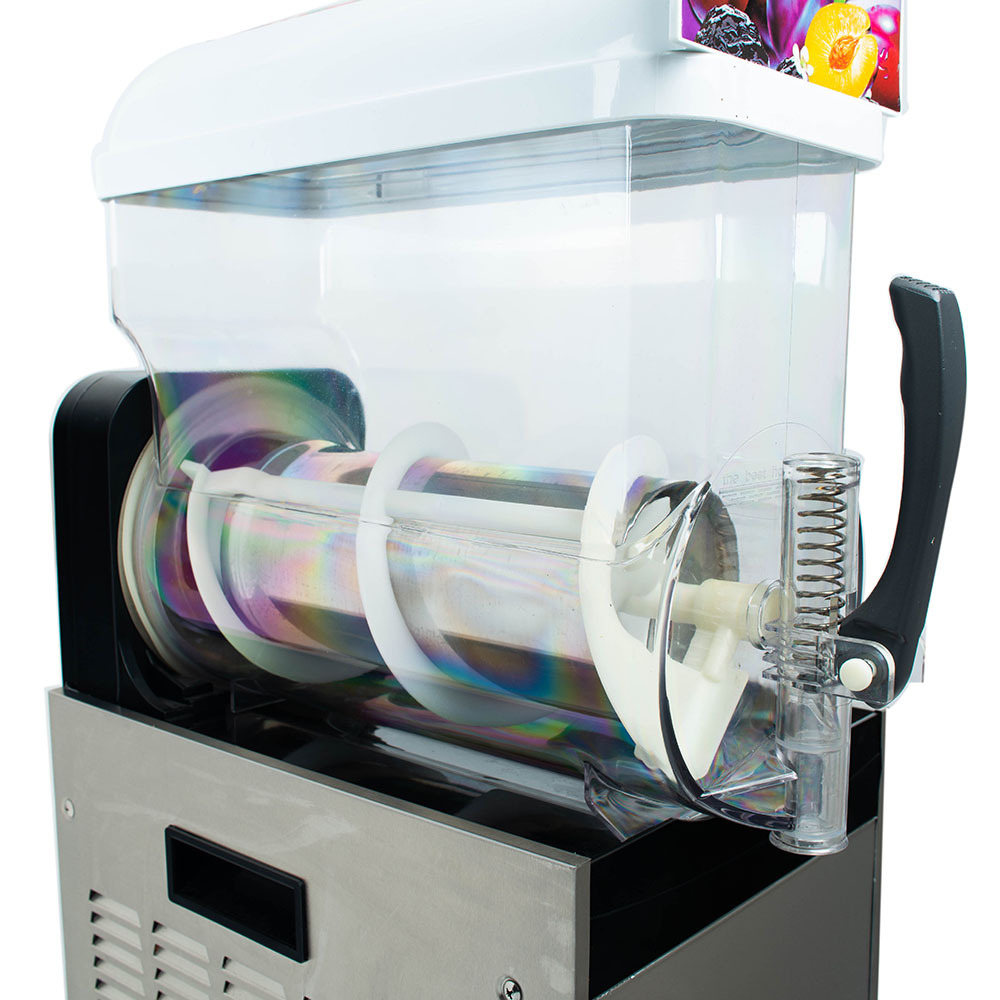 Слаш машина KRJ-15L1 Foodatlas – это профессиональное оборудование для баров, с помощью которого изготавливают сорбеты, мороженые йогурты и другие холодные десерты. В машину заливается смесь для приготовления, после чего она производит летний десерт, пользующийся широким спросом как в торговых центрах, так и в уличных торговых точках. Дизайн слаш-машины привлекает потенциальных клиентов, а прозрачные контейнеры позволяют увидеть десерт гостям заведения до его покупки. Яркий внешний вид оборудования особенно любят дети, желающие утолить жажду в теплый день.