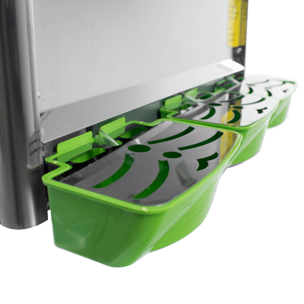 Основным элементом является корпус, сделанный из нержавейки. Внутри располагается теплообменник с хладагентом. В верхней части корпуса монтируются три ёмкости из прозрачного пластика, имеющие общий объём 36 л.