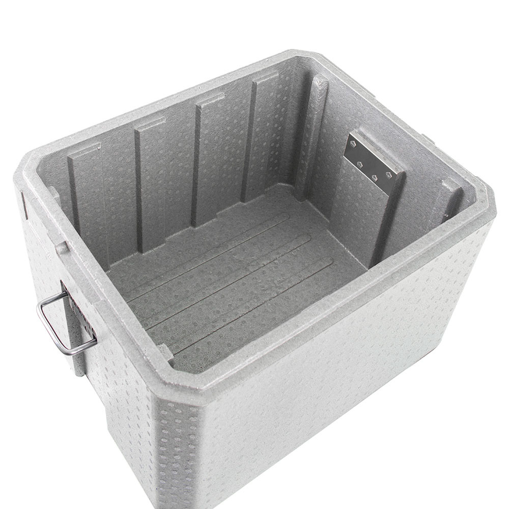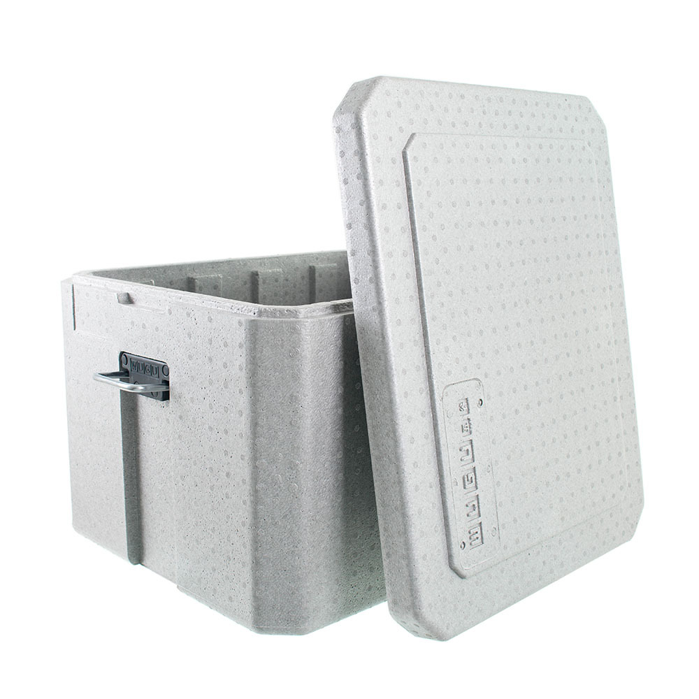 Термоконтейнер H-68L предназначен для транспортировки и хранения охлажденных или нагретых продуктов питания (напитки, овощи, фрукты, мясные и рыбные продукты, выпечка и т.д.), чувствительных к перепадам температуры. Изготовлен из материала ПОЛИПРОПИЛЕН. Помимо теплоизоляционных свойств обладает высокой ударной прочностью. Устойчивый к химическому и физическому воздействию, пенополипропилен EPP долго прослужит даже в самых экстремальных условиях. Детали, изготовленные из полипропилена, используются в автомобилестроении в узлах подверженных частым ударным нагрузкам (например: бампер), облегчая вес детали, но сохраняя характеристики жесткости.