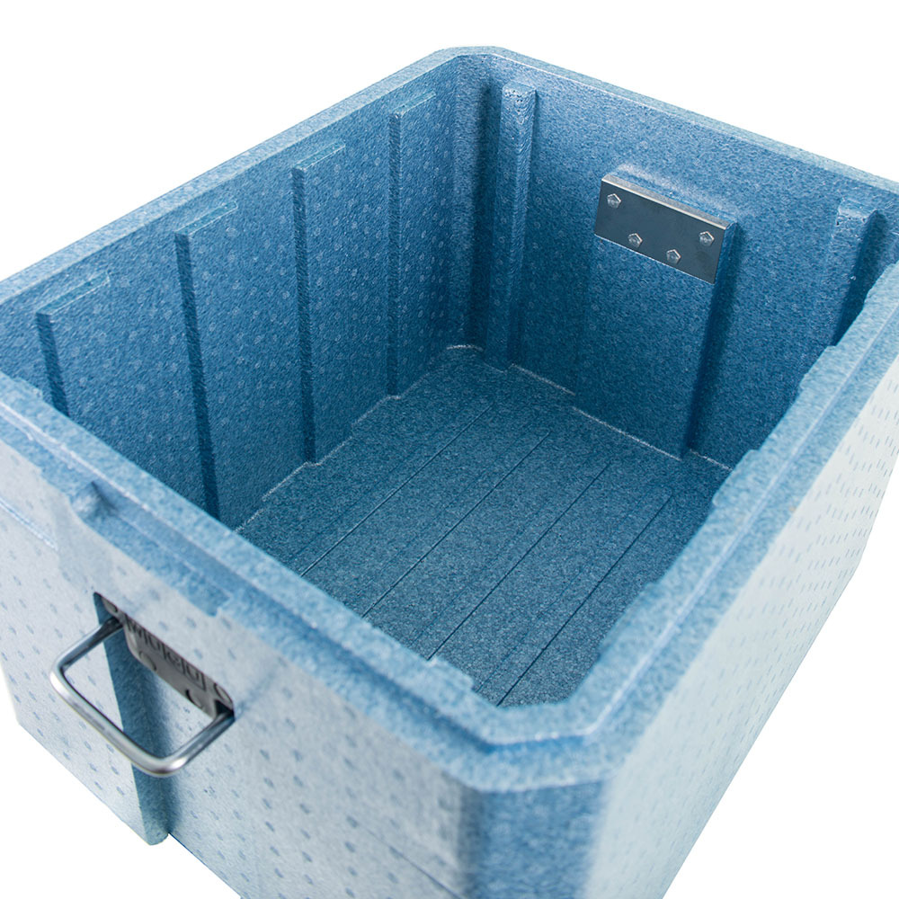 Термоконтейнер H-68L предназначен для транспортировки и хранения охлажденных или нагретых продуктов питания (напитки, овощи, фрукты, мясные и рыбные продукты, выпечка и т.д.), чувствительных к перепадам температуры.