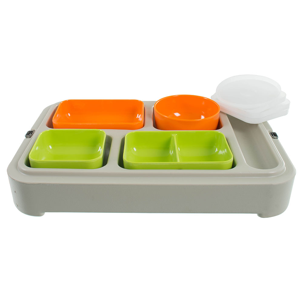 Для транспортировки контейнеры оборудованы специальными зажимами, которые обеспечивает фиксацию внутренних емкостей. Транспортировка и использование термоконтейнера возможна только в горизонтальной положением. Внутренние емкости (формы) имеют определенный объем и форм-фактор. Формы имеют верхние крышки, но могут быть негерметичными для воды.