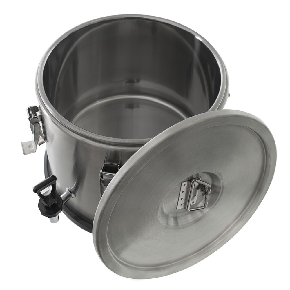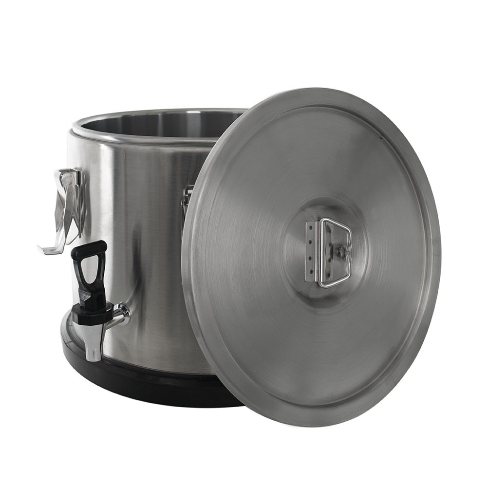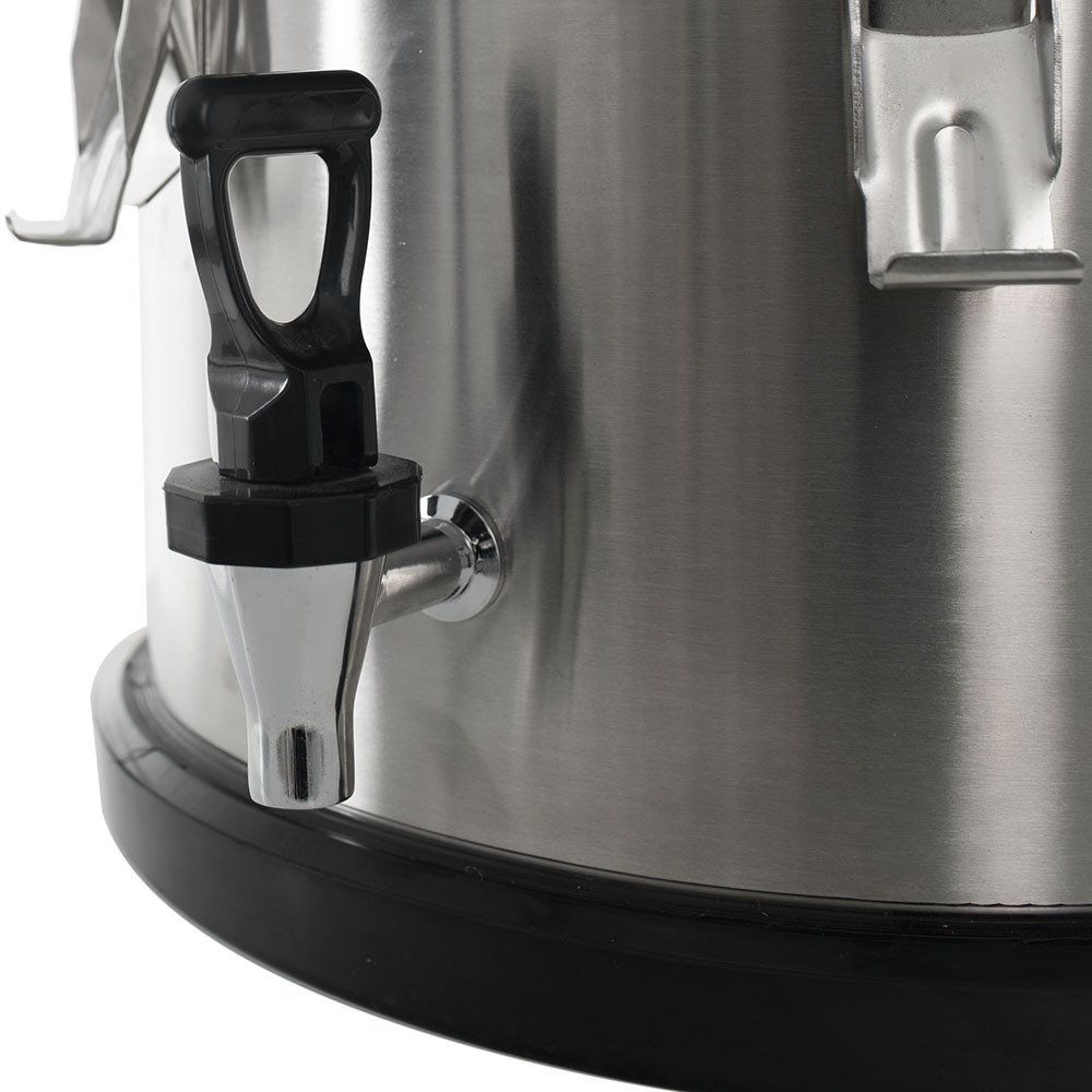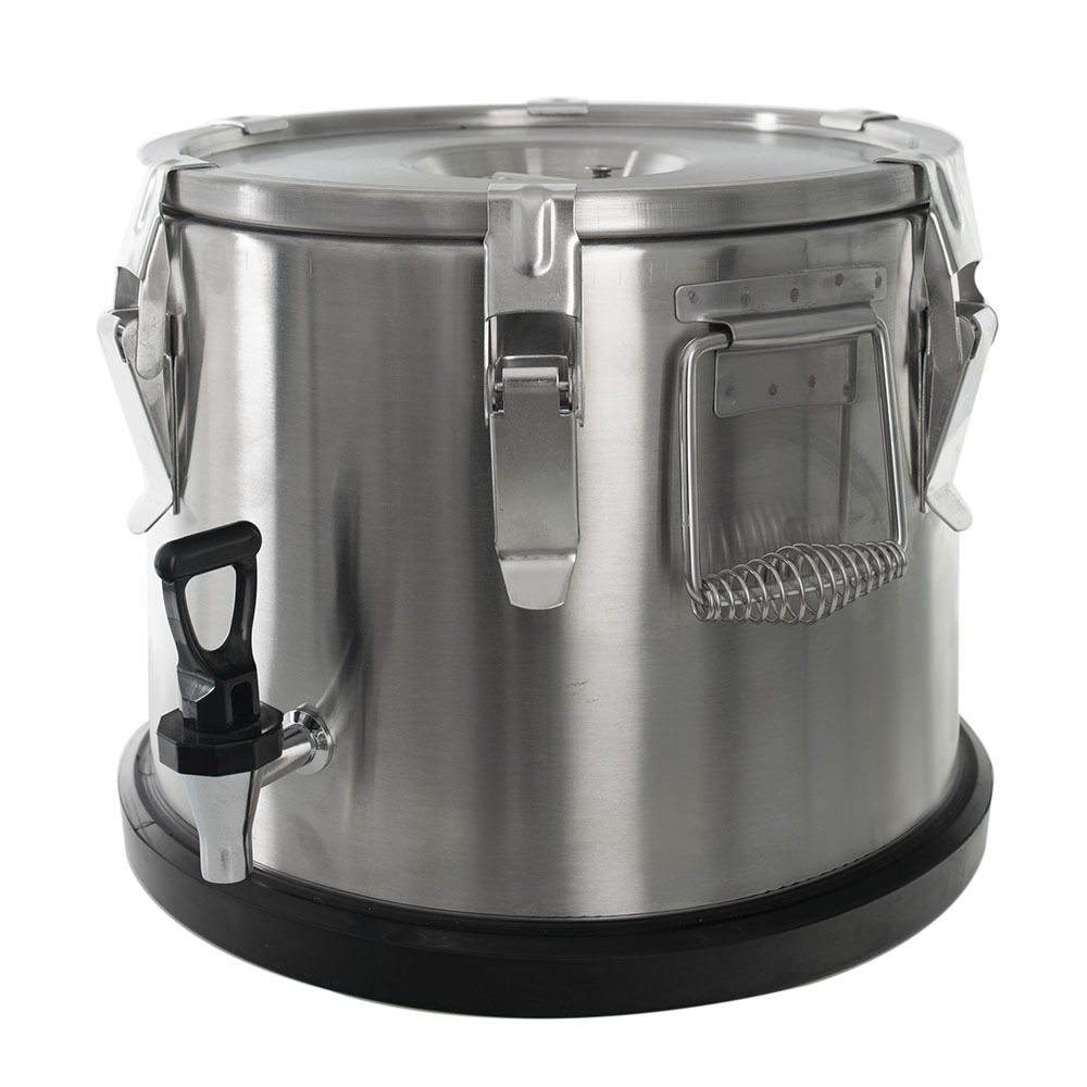 Термоконтейнер с краном 15 литров Foodatlas Pro – переносной термос для напитков, необходимый для предприятий общественного питания, в том числе оказывающих услуги обслуживания на выезде. Изготовлен из высококачественной нержавеющей пищевой стали. Пространство между двойной стенкой заполнено вспененным полиуретаном, обеспечивающим хорошую термоизоляцию на длительное время. Изделие подойдет и для коммерческих, и для социальных учреждений, обеспечивающих переноску напитков на летние площадки рядом с заведениями или их перевозку на более длительные расстояния.
