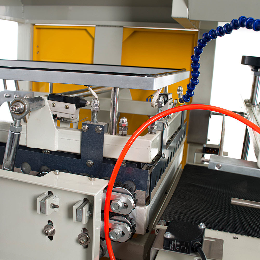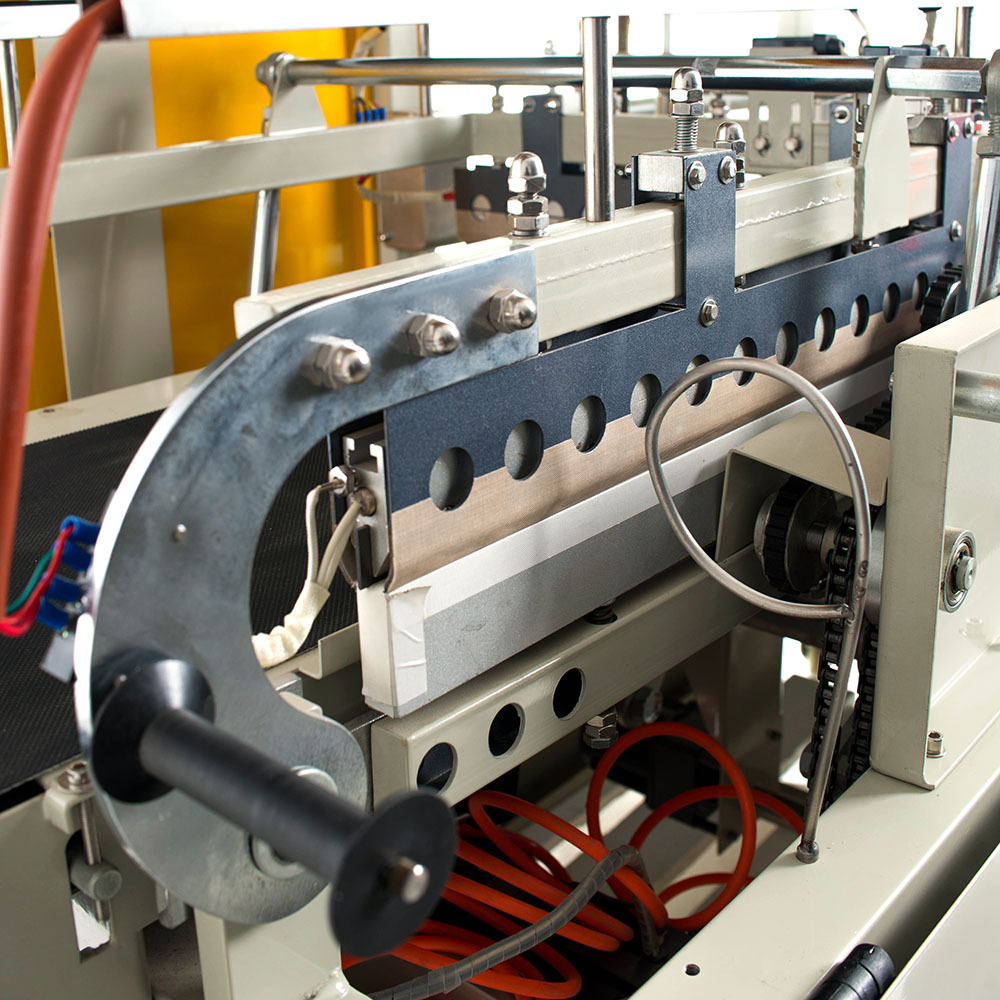 Такой вид упаковки обеспечивает товарам полную герметичность, предотвращая их от влаги и загрязнений, а также защищает товары от внешних ударов, особенно при использовании контейнеров для упаковки, помогая предотвратить разбитие. Данная машина широко применяется для упаковки металлоизделий, химикатов, книг и прочих товаров. Нож является одним из продвинутых средств упаковки на современном рынке.