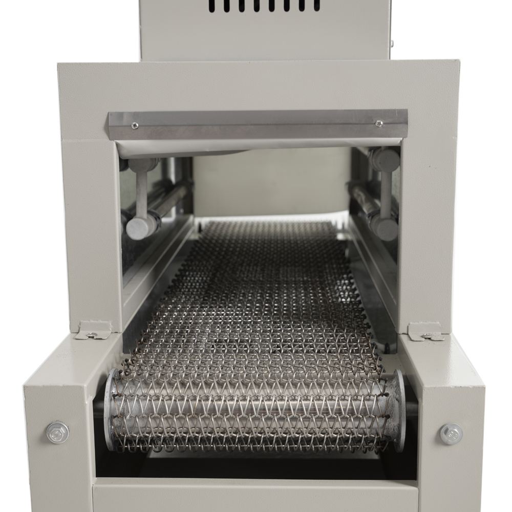 - перемещение продукта в процессе термоусадки осуществляется ленточным конвейером.