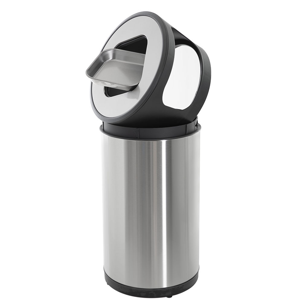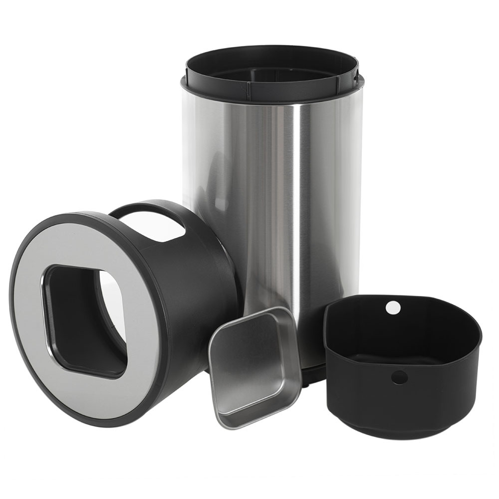 Стальной корпус сочетает в себе долговечность и современный стиль. Благодаря разнообразию объёмов сенсорные вёдра используют не только дома: на кухне, в санузле, в детской комнате; но и в офисах или обеденных зонах компаний, а также в загородных домах и коттеджах. Надежное ведро-вставка и фиксатор мешка делает использование мусорного ведра удобным на протяжении всего срока эксплуатации. Особенностью данной модели является разнообразие в открытие верхней крышки, которыми возможно воспользоваться в зависимости от ситуации.