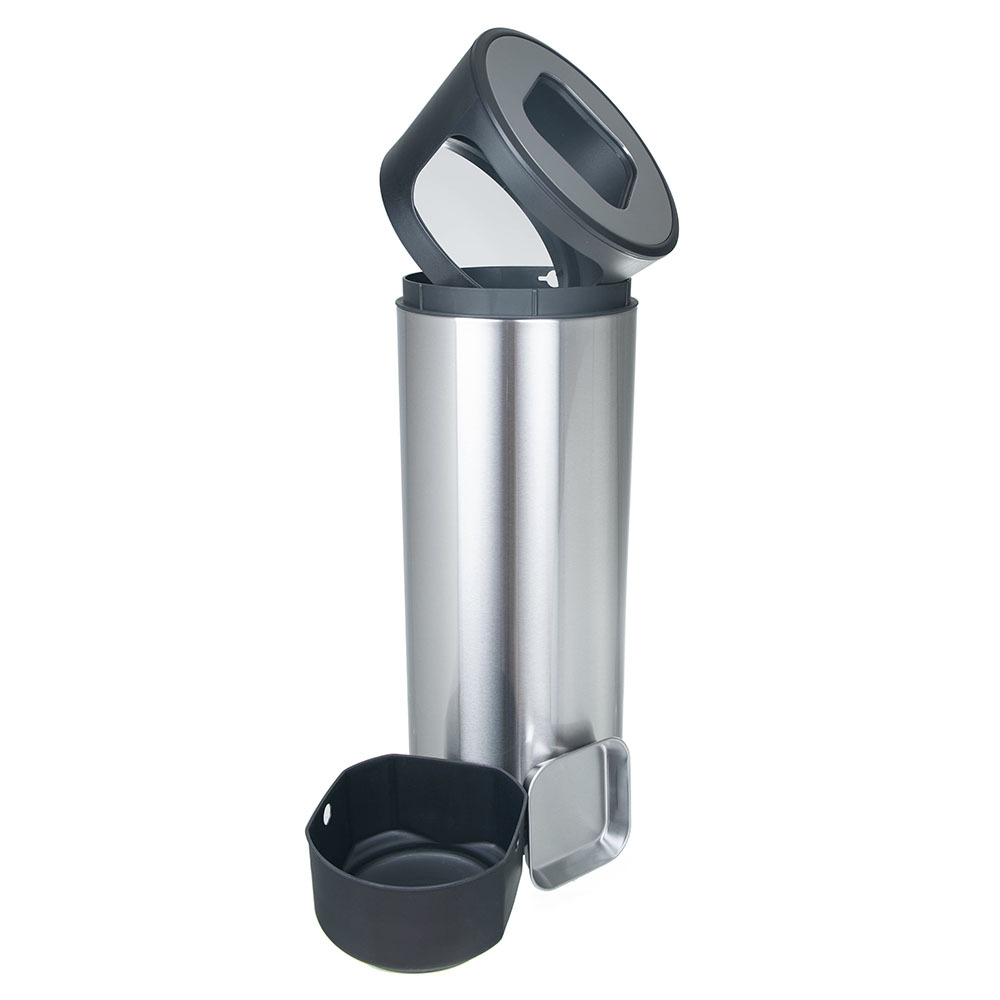 Стальной корпус сочетает в себе долговечность и современный стиль. Благодаря разнообразию объёмов сенсорные вёдра используют не только дома: на кухне, в санузле, в детской комнате; но и в офисах или обеденных зонах компаний, а также в загородных домах и коттеджах. Надежное ведро-вставка и фиксатор мешка делает использование мусорного ведра удобным на протяжении всего срока эксплуатации. Особенностью данной модели является разнообразие в открытие верхней крышки, которыми возможно воспользоваться в зависимости от ситуации.