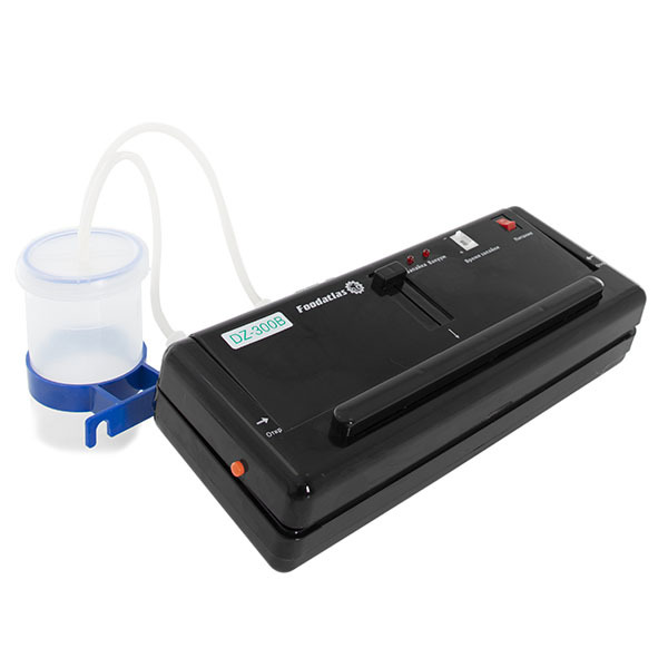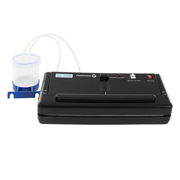 Домашний вакуумный упаковщик DZ-300B оснащен функцией удаления (откачки) жидкости из вакуумного пакета в специальный контейнер.