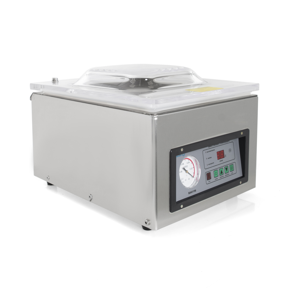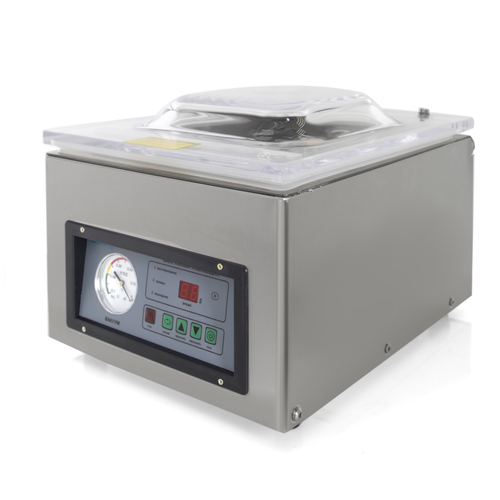 Упаковщик DZ-260C Foodatlas Eco с одной камерой и одним нагревательным элементом имеет ширину запаечного шва 8 мм и размер камеры вакуума 330*275*50. Компактный и функциональный прибор позволит обеспечить сохранность продуктов путем небольших усилий и минимальных временных затрат на упаковку. Данная модель отличается от DZ-260D панелью управления и внутренней камерой.