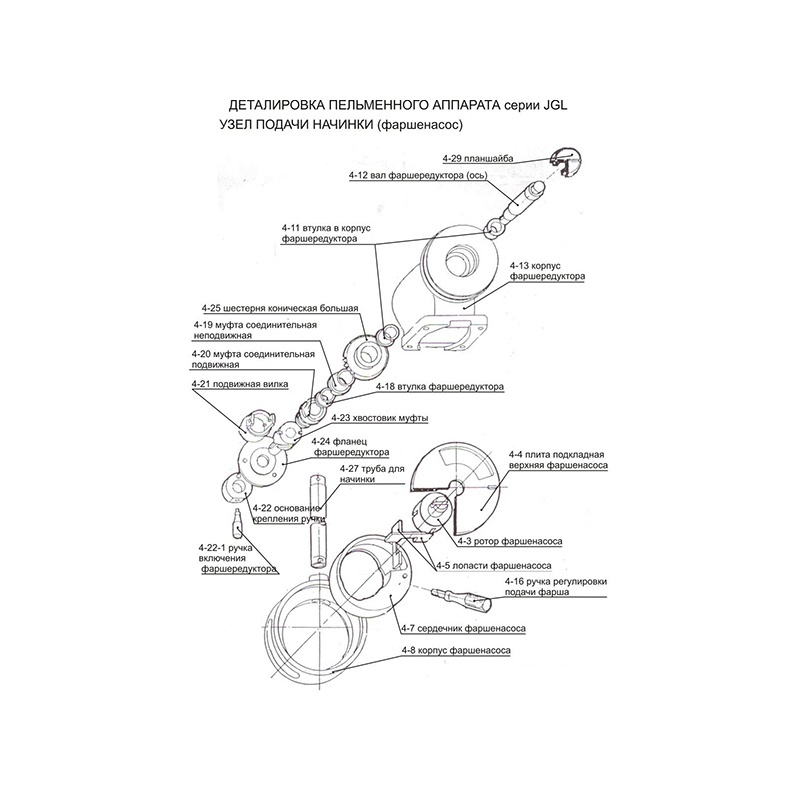 Вал редуктора подачи фарша в сборе с шляпой оси JGL-60 является комплектующей частью пельменных аппаратов серий JGL, JBL.