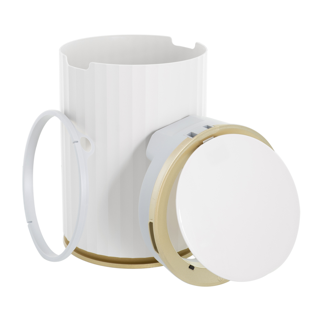 Надежный корпус сочетает в себе долговечность и современный стиль. Светлый оттенок наиболее гармонично впишется в интерьер вашего дома. Благодаря разнообразию объёмов сенсорные вёдра используют не только дома: на кухне, в санузле, в детской комнате; но и в офисах или обеденных зонах компаний, а также в загородных домах и коттеджах. Особенностью данной модели является разнообразие в открытие верхней крышки, которыми возможно воспользоваться в зависимости от ситуации.