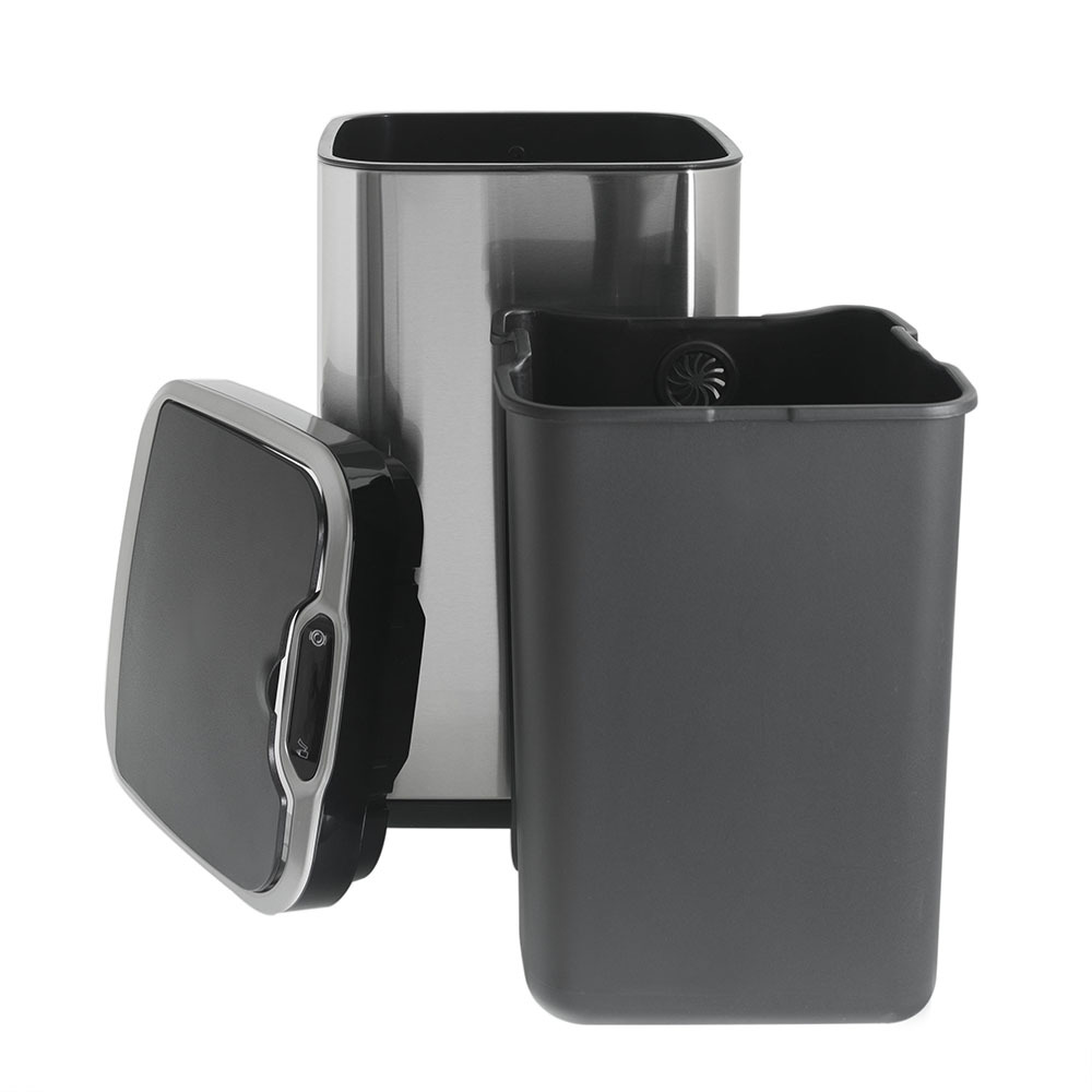 Стальной корпус сочетает в себе долговечность и современный стиль. Благодаря разнообразию объёмов сенсорные вёдра используют не только дома: на кухне, в санузле, в детской комнате; но и в офисах или обеденных зонах компаний, а также в загородных домах и коттеджах. Надежное ведро-вставка и фиксатор мешка делает использование мусорного ведра удобным на протяжении всего срока эксплуатации. Особенностью данной модели является разнообразие в открытие верхней крышки, которыми возможно воспользоваться в зависимости от ситуации.