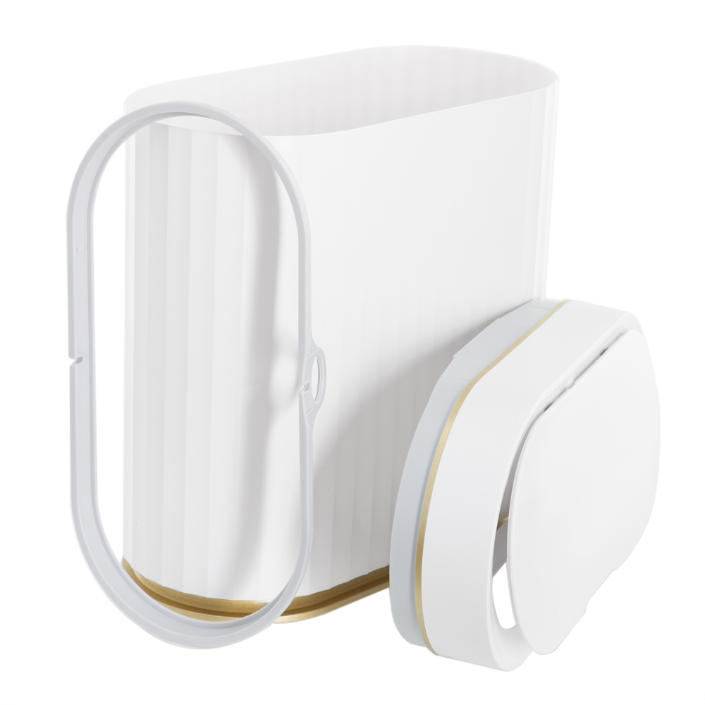 Надежный корпус сочетает в себе долговечность и современный стиль. Светлый оттенок наиболее гармонично впишется в интерьер вашего дома. Благодаря разнообразию объёмов сенсорные вёдра используют не только дома: на кухне, в санузле, в детской комнате; но и в офисах или обеденных зонах компаний, а также в загородных домах и коттеджах. Особенностью данной модели является разнообразие в открытие верхней крышки, которыми возможно воспользоваться в зависимости от ситуации.
