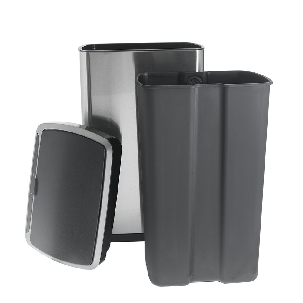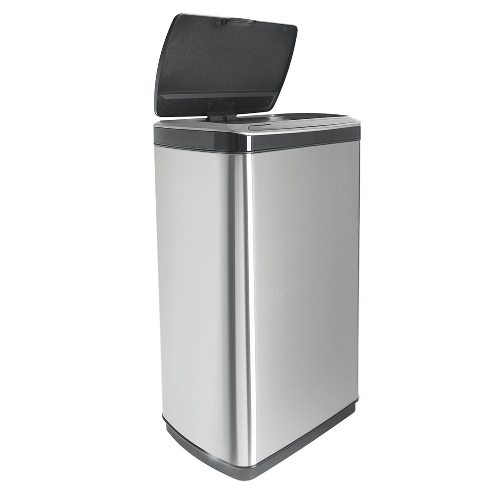 Стальной корпус сочетает в себе долговечность и современный стиль. Благодаря разнообразию объёмов сенсорные вёдра используют не только дома: на кухне, в санузле, в детской комнате; но и в офисах или обеденных зонах компаний, а также в загородных домах и коттеджах. Надежное ведро-вставка и фиксатор мешка делает использование мусорного ведра удобным на протяжении всего срока эксплуатации. Особенностью данной модели является разнообразие в открытие верхней крышки, которыми возможно воспользоваться в зависимости от ситуации.