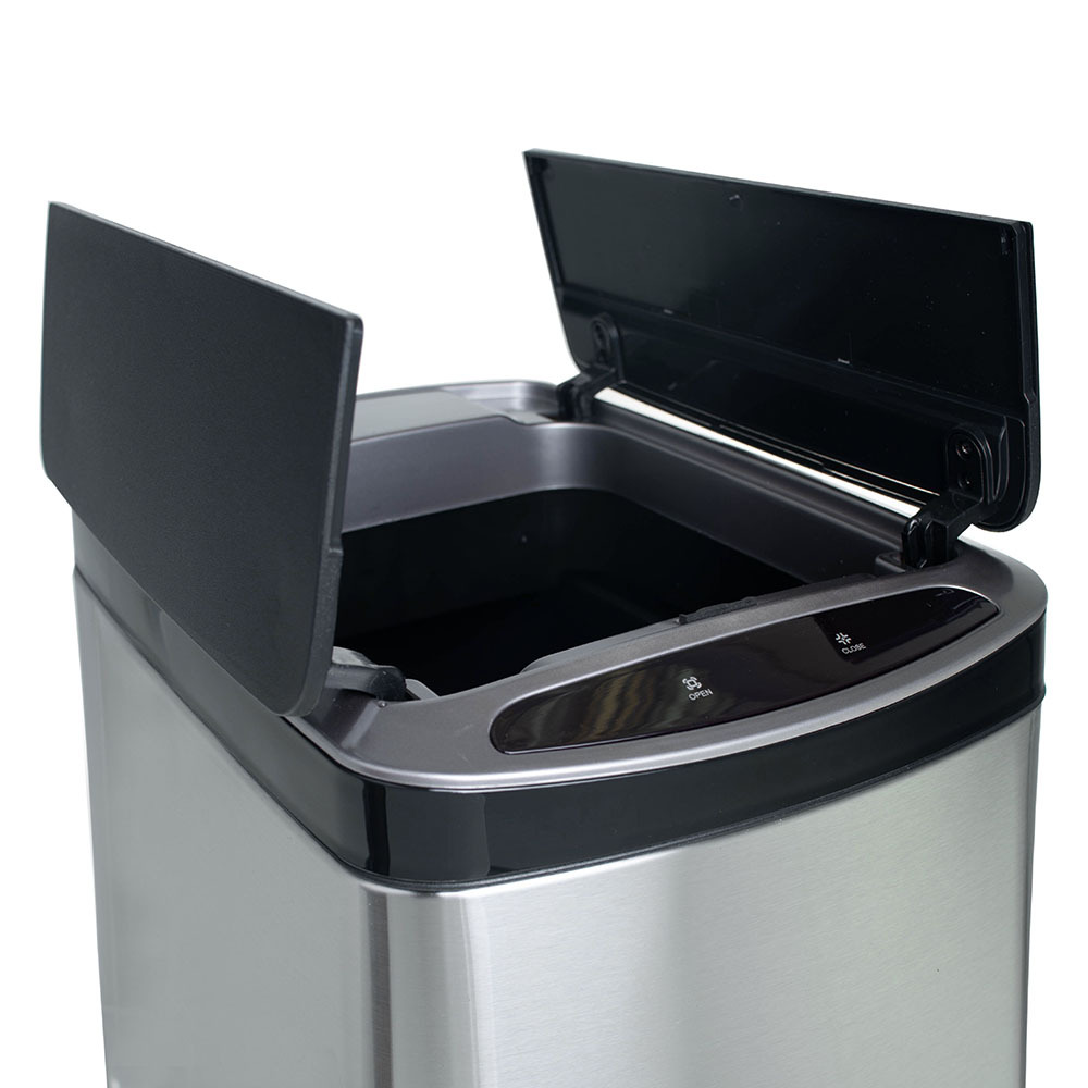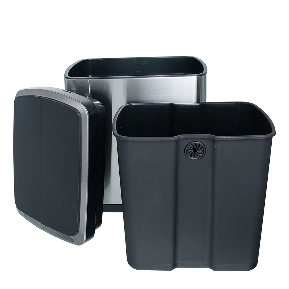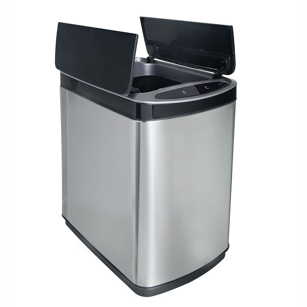 Стальной корпус сочетает в себе долговечность и современный стиль. Благодаря разнообразию объёмов сенсорные вёдра используют не только дома: на кухне, в санузле, в детской комнате; но и в офисах или обеденных зонах компаний, а также в загородных домах и коттеджах. Надежное ведро-вставка и фиксатор мешка делает использование мусорного ведра удобным на протяжении всего срока эксплуатации. Особенностью данной модели является разнообразие в открытие верхней крышки, которыми возможно воспользоваться в зависимости от ситуации.