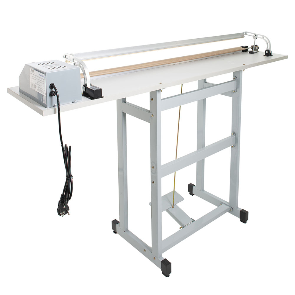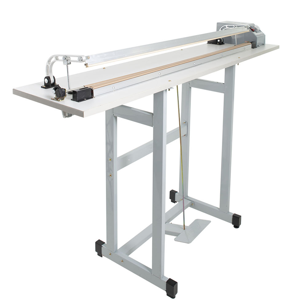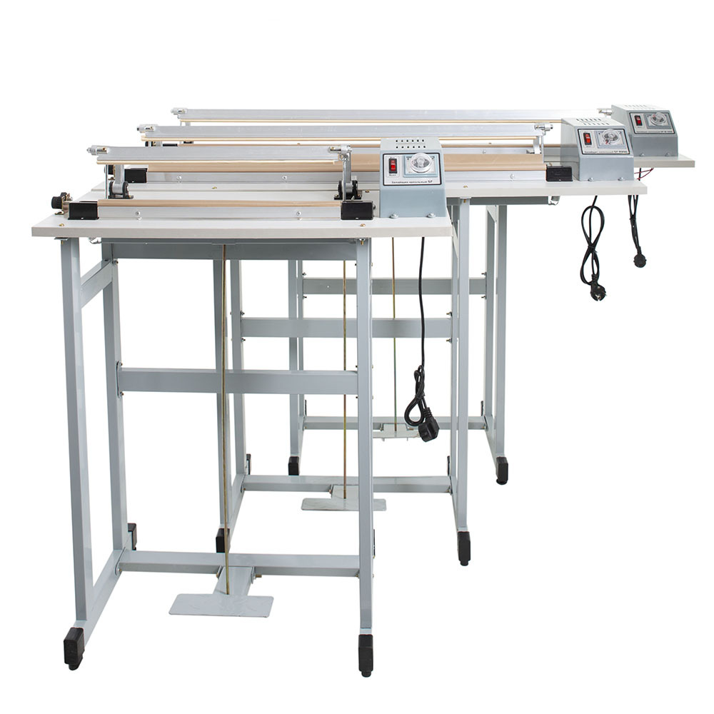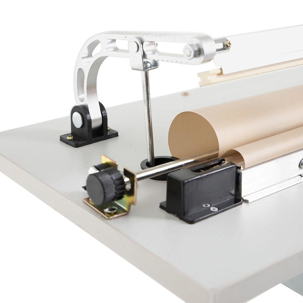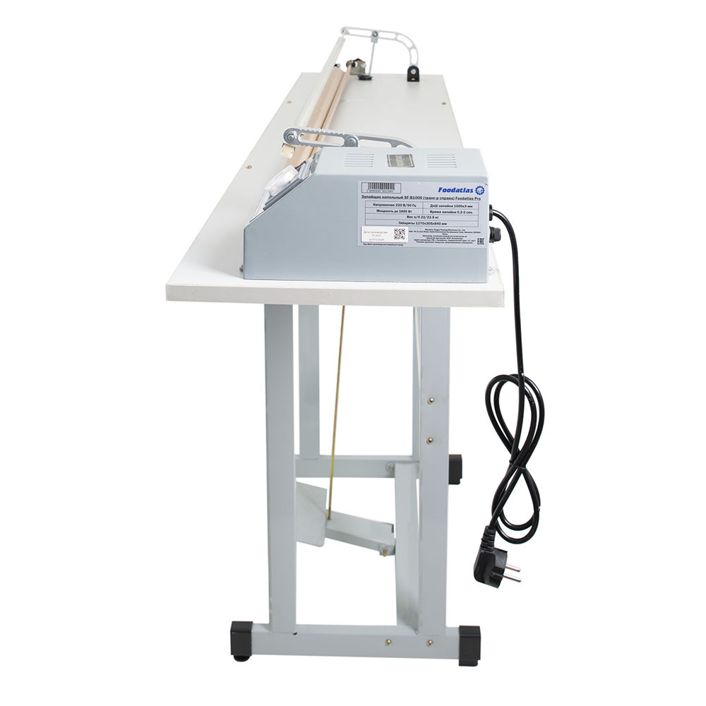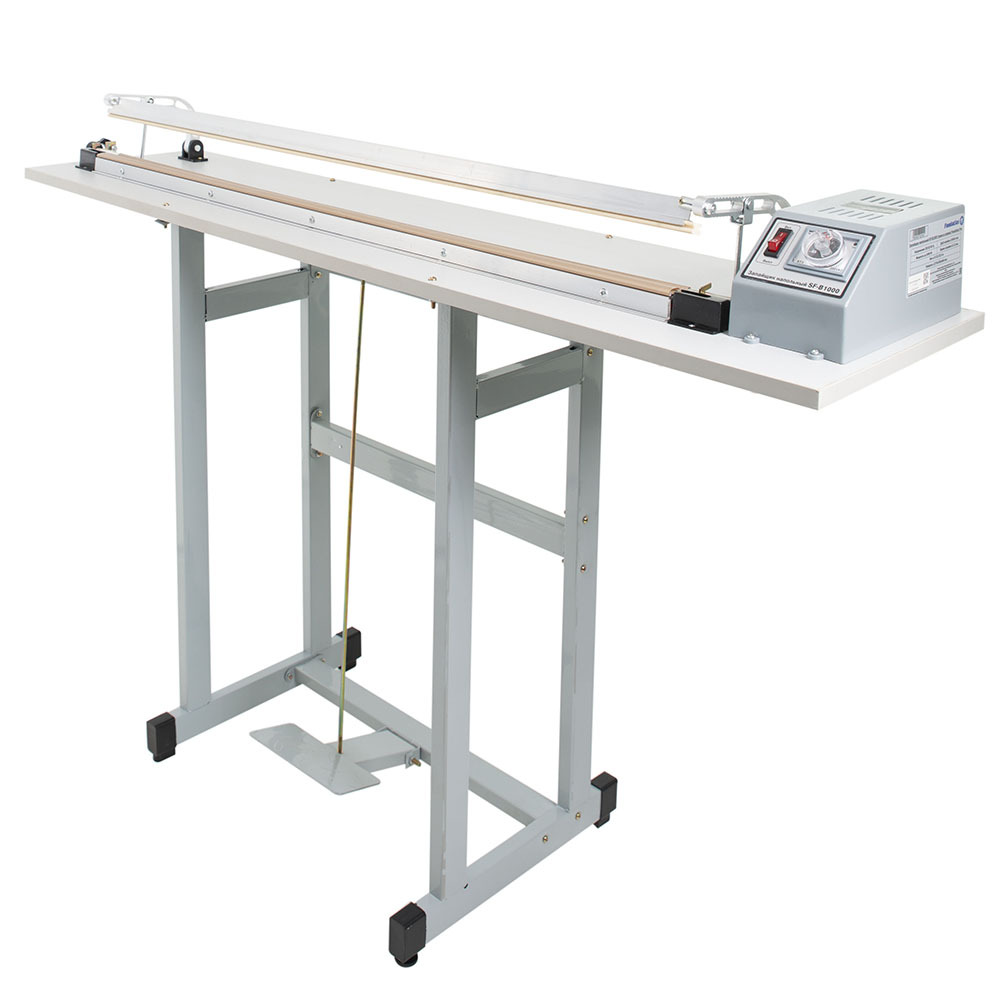 Напольный механический запайщик SF-B1000 (транс-р справа) Foodatlas Pro состоит из корпуса с электронным блоком регулировки режима сварки и подвижного прижимного рычага с силиконовой вставкой.