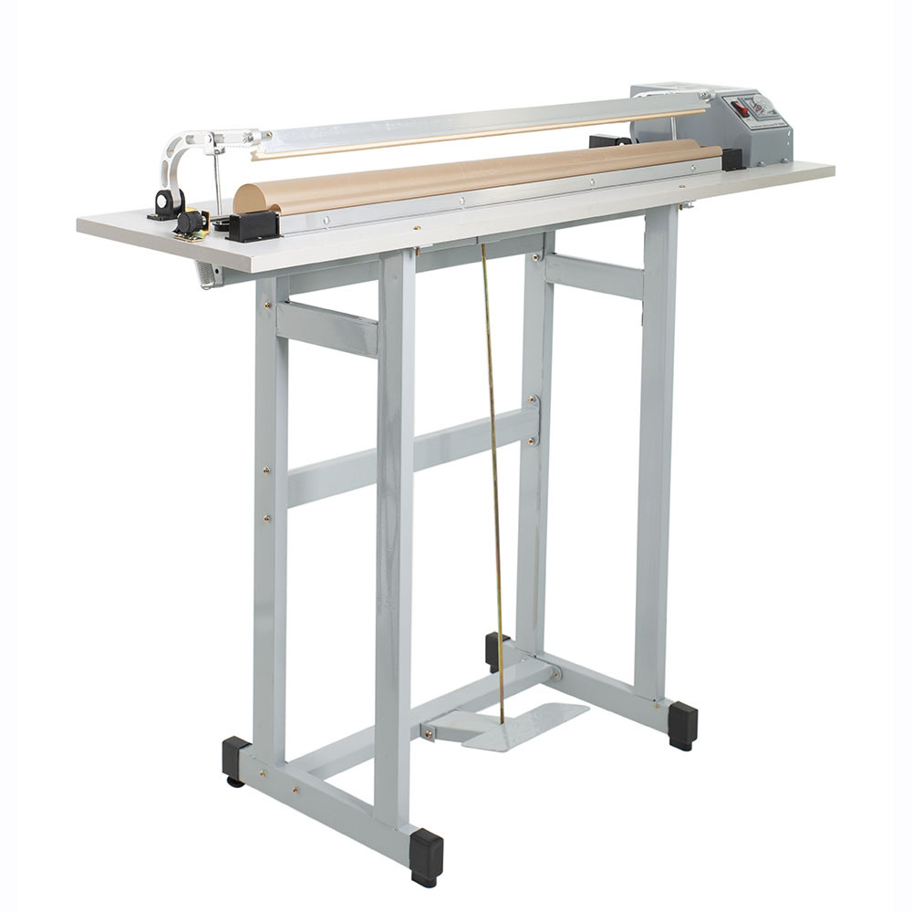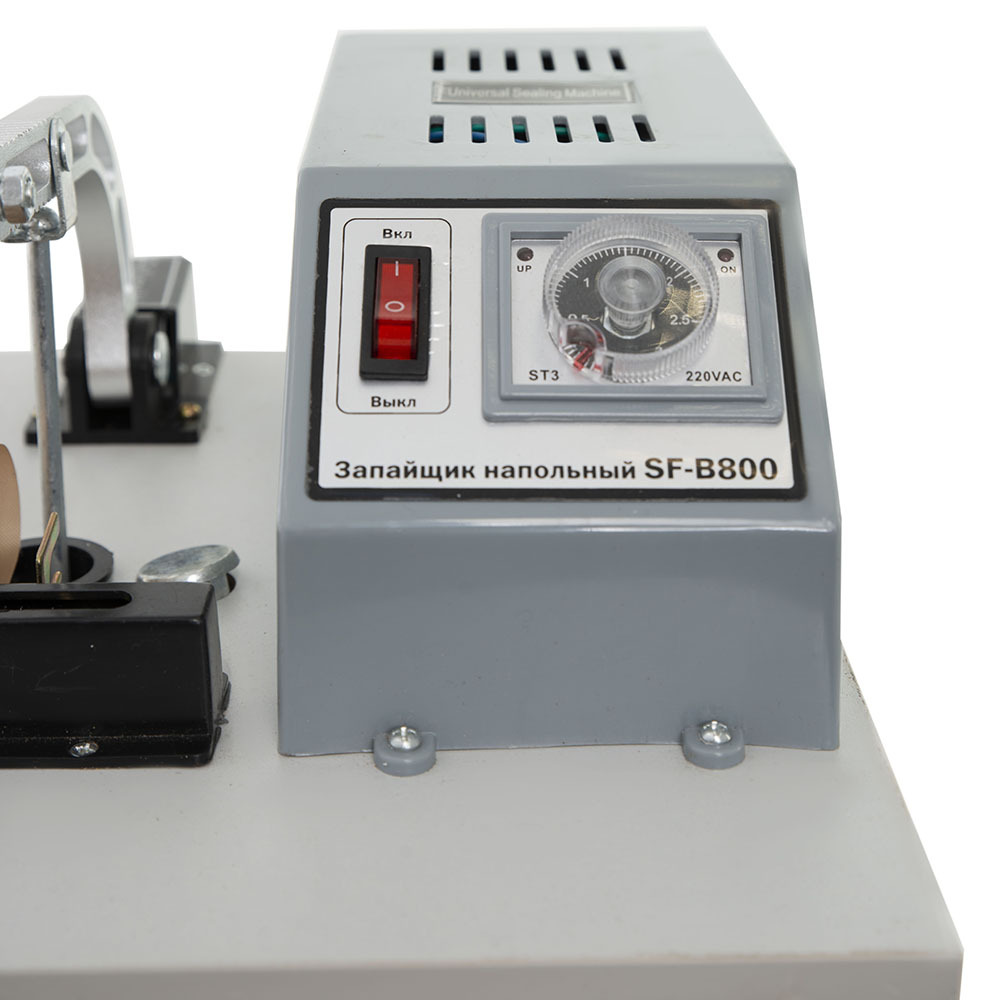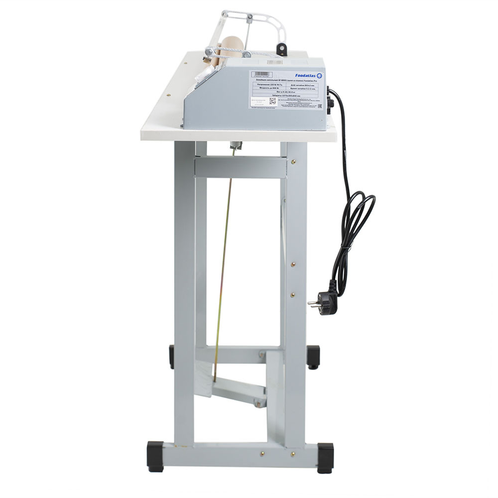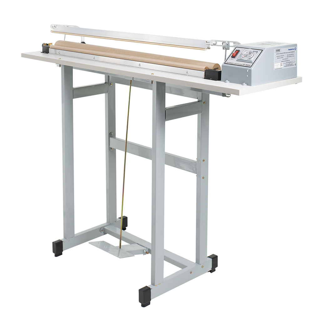 Напольный механический запайщик SF-B800 (транс-р справа) Foodatlas Pro состоит из корпуса с электронным блоком регулировки режима сварки и подвижного прижимного рычага с силиконовой вставкой.