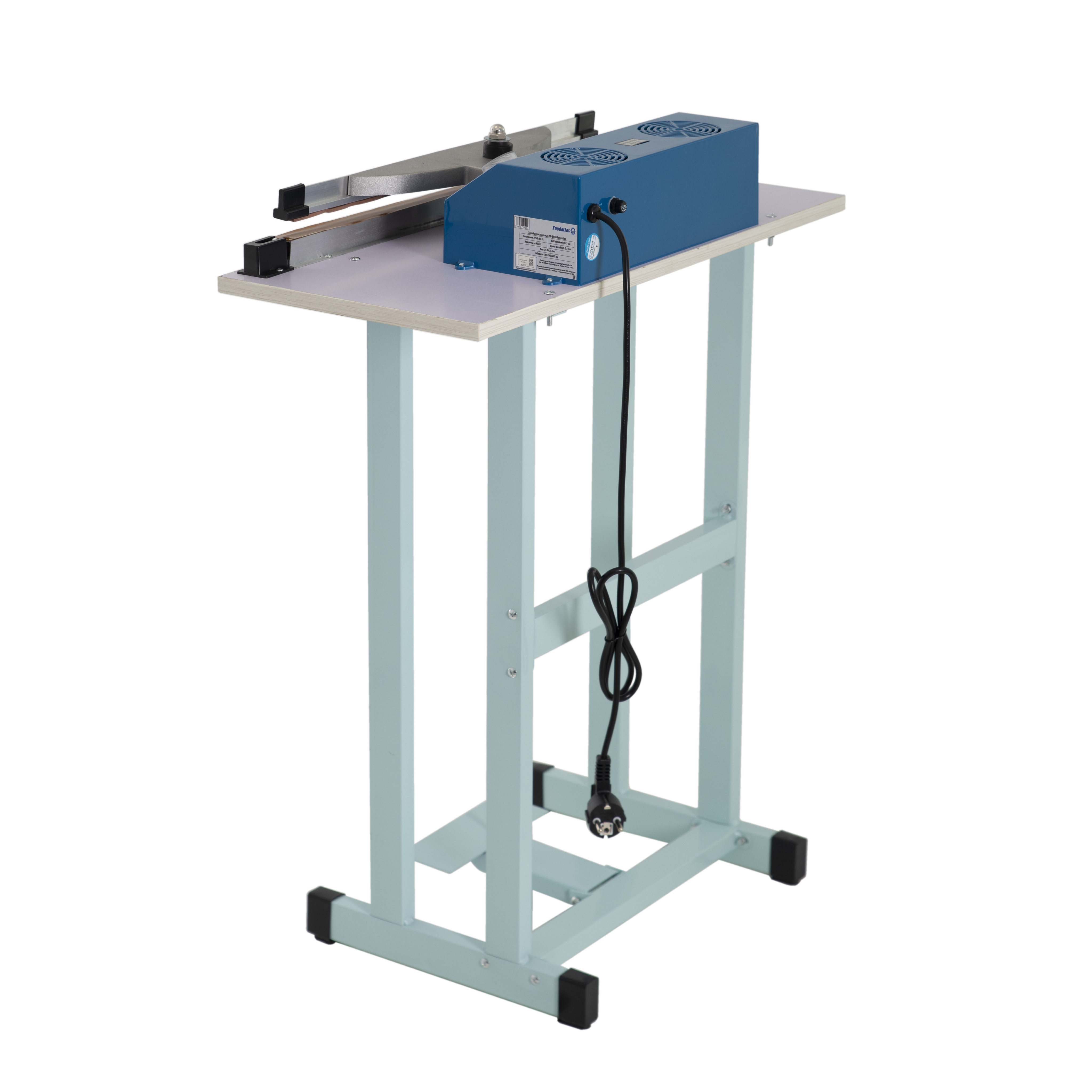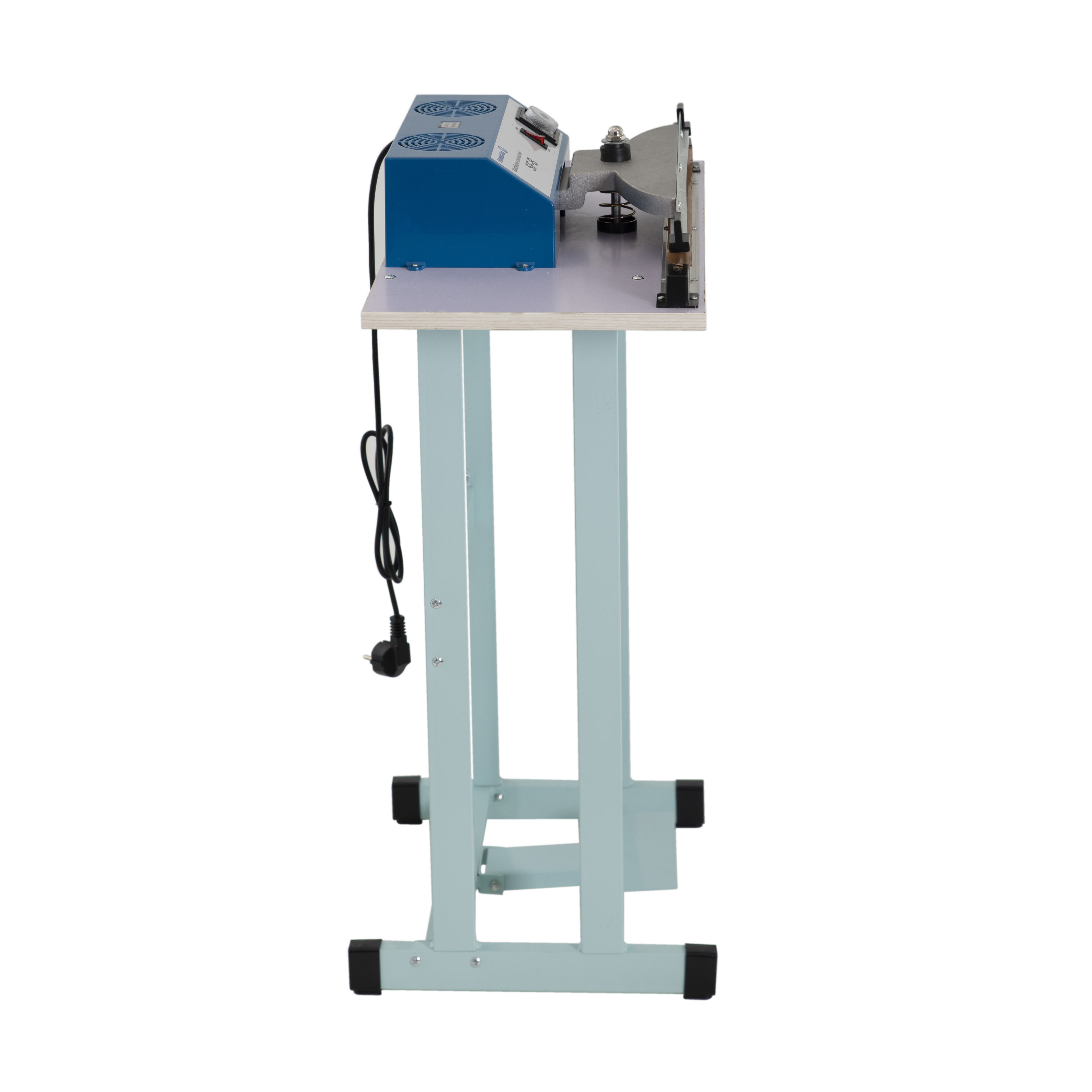Напольный механический запайщик SF-B600 Foodatlas состоит из корпуса с электронным блоком регулировки режима сварки и подвижного прижимного рычага с силиконовой вставкой.