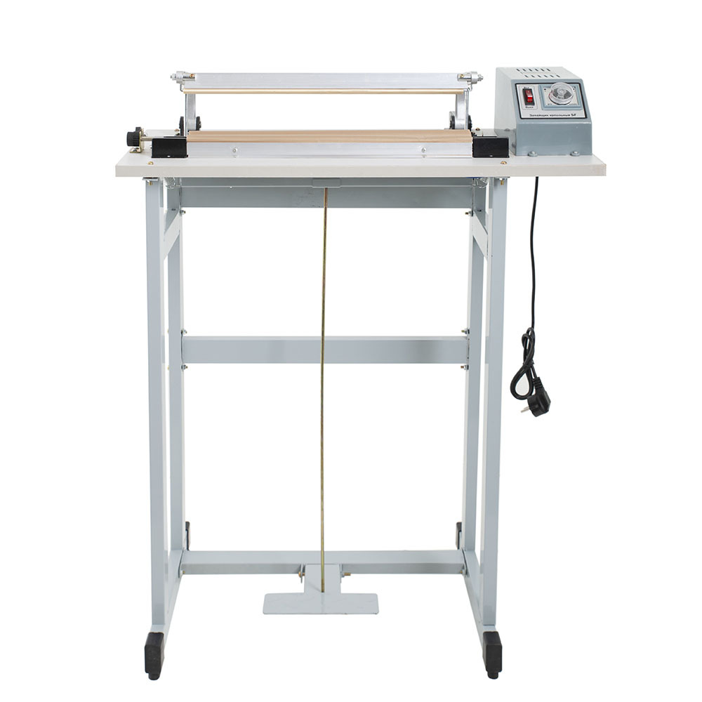 Напольный механический запайщик SF-B600 (транс-р справа) Foodatlas Pro состоит из корпуса с электронным блоком регулировки режима сварки и подвижного прижимного рычага с силиконовой вставкой.