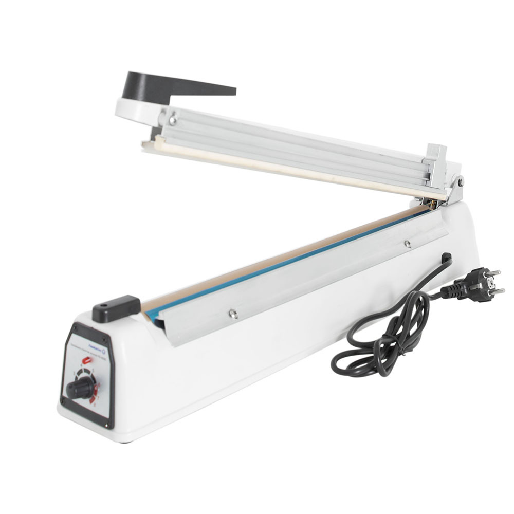 Запайщик пакетов ручной FS-400C предназначен для настольной установки, поэтому имеет небольшой вес и компактные размеры. Корпус аппарата выполнен из металла, что продляет его срок службы и обеспечивает защиту от механических повреждений. На корпусе находится регулятор времени нагрева, позволяющий устанавливать время запаивания от 0 до 2,5 секунд. Спаивающим элементом выступает никелевая пластина.