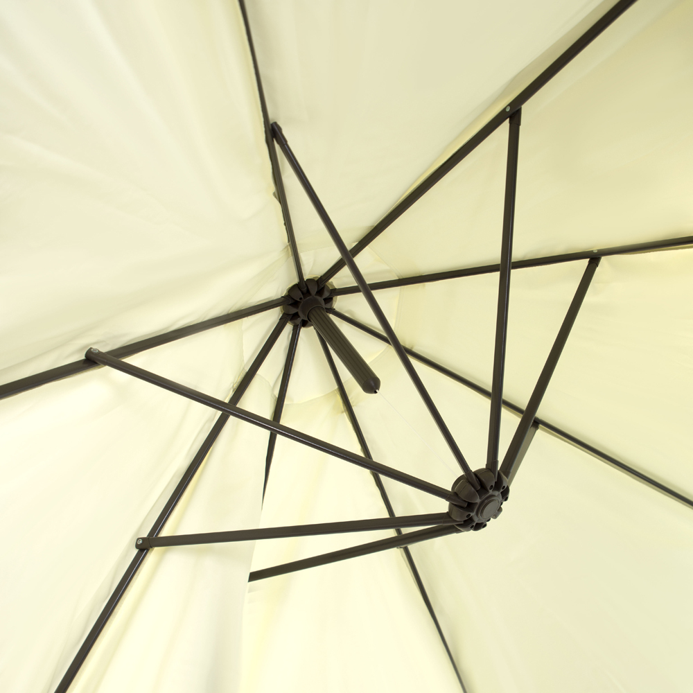 Зонт с прочным металлическим каркасом подходит для установки на улице. Он устойчив к атмосферным осадкам, дождю, сильному ветру. Большой вес позволяет устанавливать конструкцию на продолжительный период времени. Стальной каркас отличается прочностью и долговечностью.