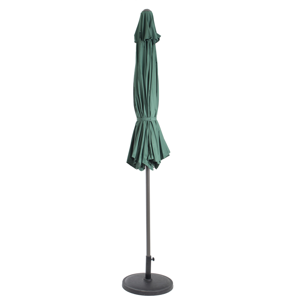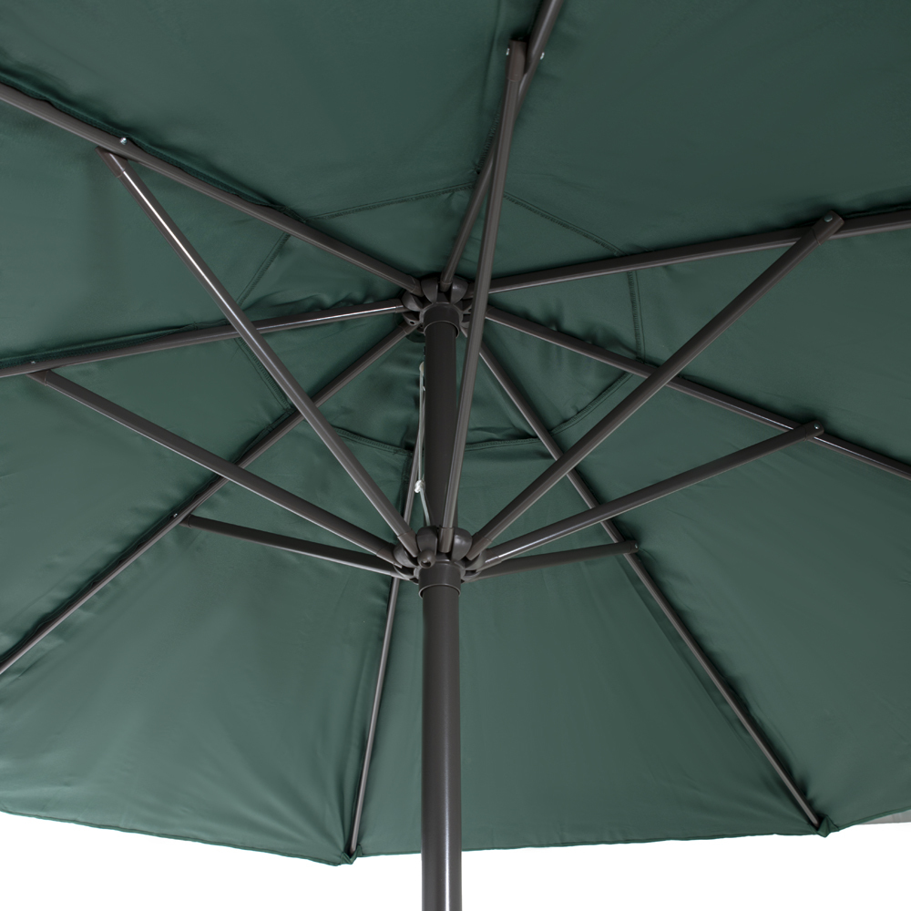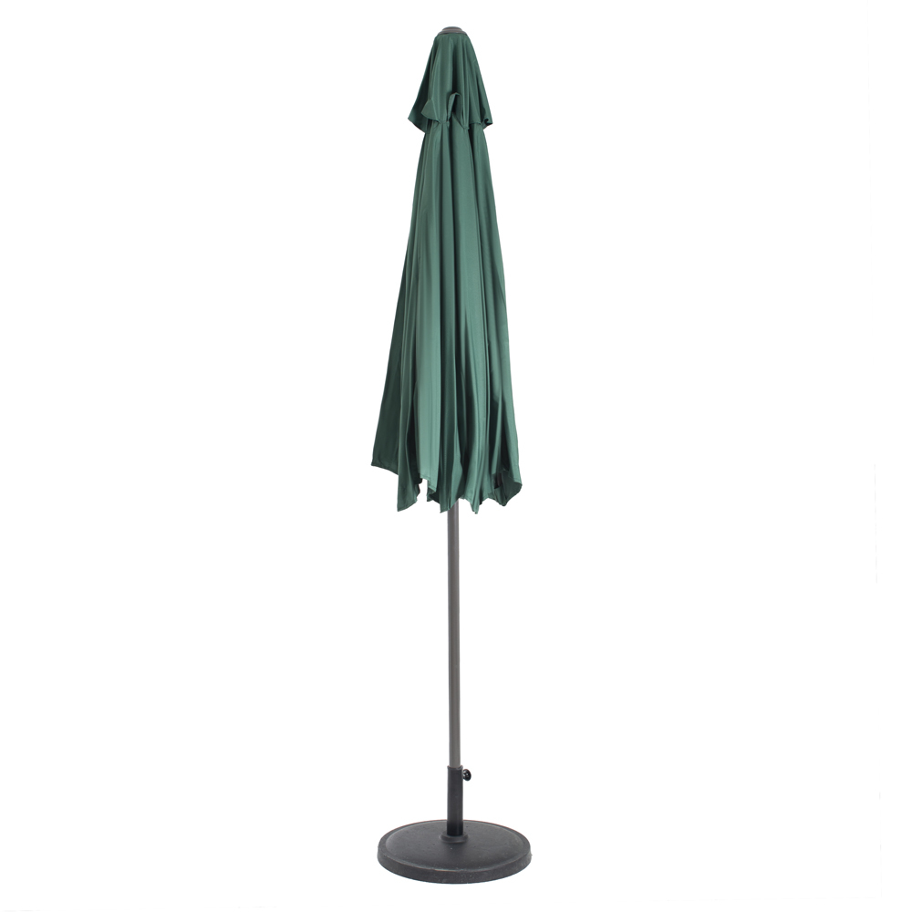 Зонт с прочным металлическим каркасом подходит для установки на улице. Он устойчив к атмосферным осадкам, дождю, сильному ветру. Большой вес позволяет устанавливать конструкцию на продолжительный период времени. Стальной каркас отличается прочностью и долговечностью.